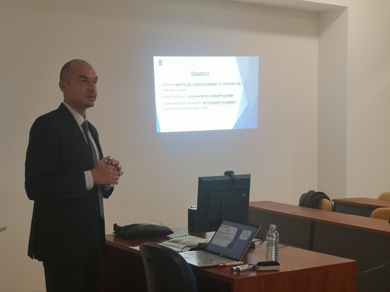 Во таа насока, Развојната банка на Република Северна Македонија имаше гостинско едукативно предавање пред студентите од Факултетот за економски науки како дел од предметот Банкарство. Горан Ковачев, шеф на Службата за план и анализа при Развојната банка, во рамките на своето предавање ги запозна студентите со историјата и почетоците на банката, која што датира уште од 1998 година, кога е формирана со посебен Закон за основање на Македонска банка за поддршка на развојот. Ковачев говорејќи за почетоците на Развојната банка, истакна дека нејзината мисија е преку понуда на финансиски производи да се создаде амбиент за подобрување на конкурентноста, поддршка на извозот, економски раст и развој на домашните компании.