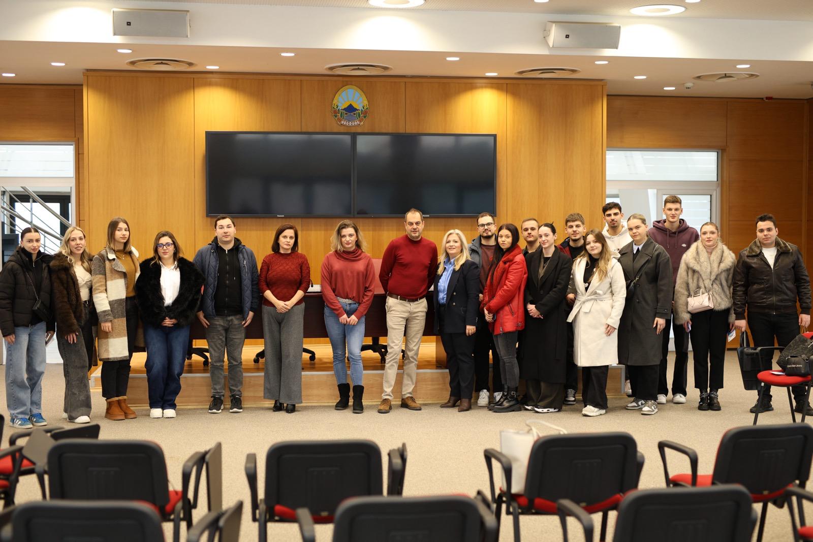 The students gained valuable insight into the practical aspects of prosecuting perpetrators of criminal offenses through a presentation by the Head of the Basic Public Prosecutor’s Office Skopje, Prosecutor Gabrile Bubevski.