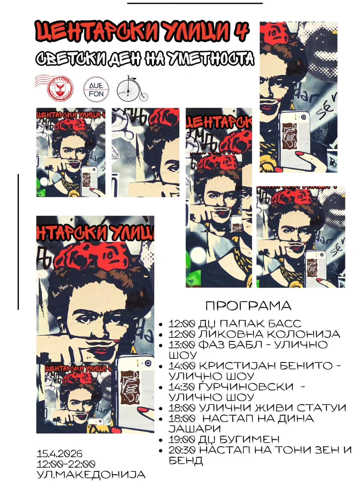 Студентите од Факултетот за дизајн и мултимедија при АУЕ-ФОН, под менторство на проф. Милош Милосављевиќ, се дел од ликовната колонија во рамки на манифестацијата „Центарски улици 4 – Светски ден на уметноста“.